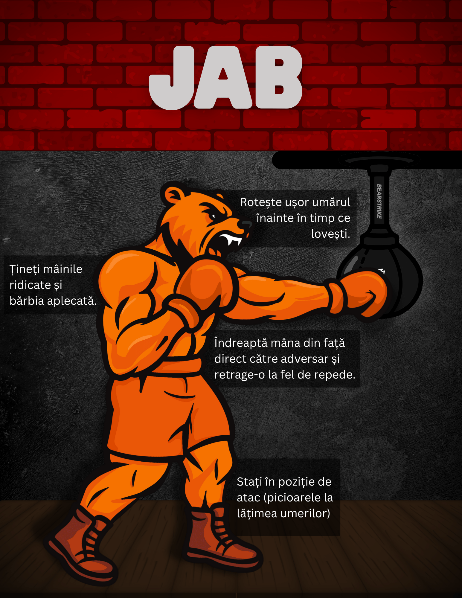 Jabul este un pumn rapid și direct, care controlează distanța, distruge sincronizarea și pregătește combinațiile. Mai degrabă rapid și precis decât puternic, este elementul esențial din bazele arsenalului fiecărui luptător.
